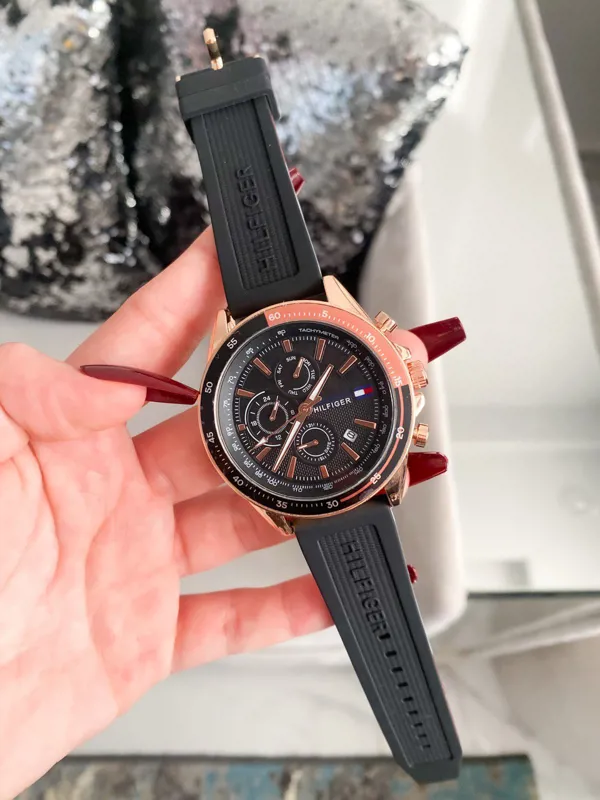 ساعة رياضية أنيقة من Tommy Hilfiger تجمع بين الأناقة الرياضية والأداء العملي.