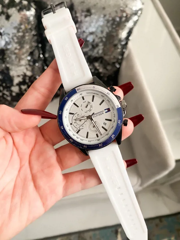 ساعة رياضية أنيقة من Tommy Hilfiger تجمع بين الأناقة الرياضية والأداء العملي.